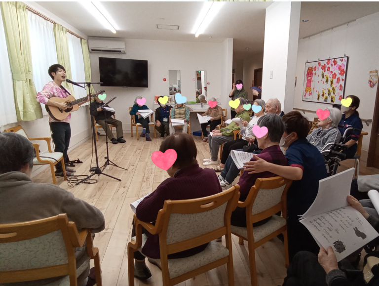 今回は、シンガーソングライターの方を招いて開催した、音楽レクリエーションの様子をお届けいたします! 皆さん、音楽は多かれ少なかれ、心躍りますね。 当日は皆様期待に胸が高鳴り、朝から楽しみにされていました。 開始予定時刻が […] -