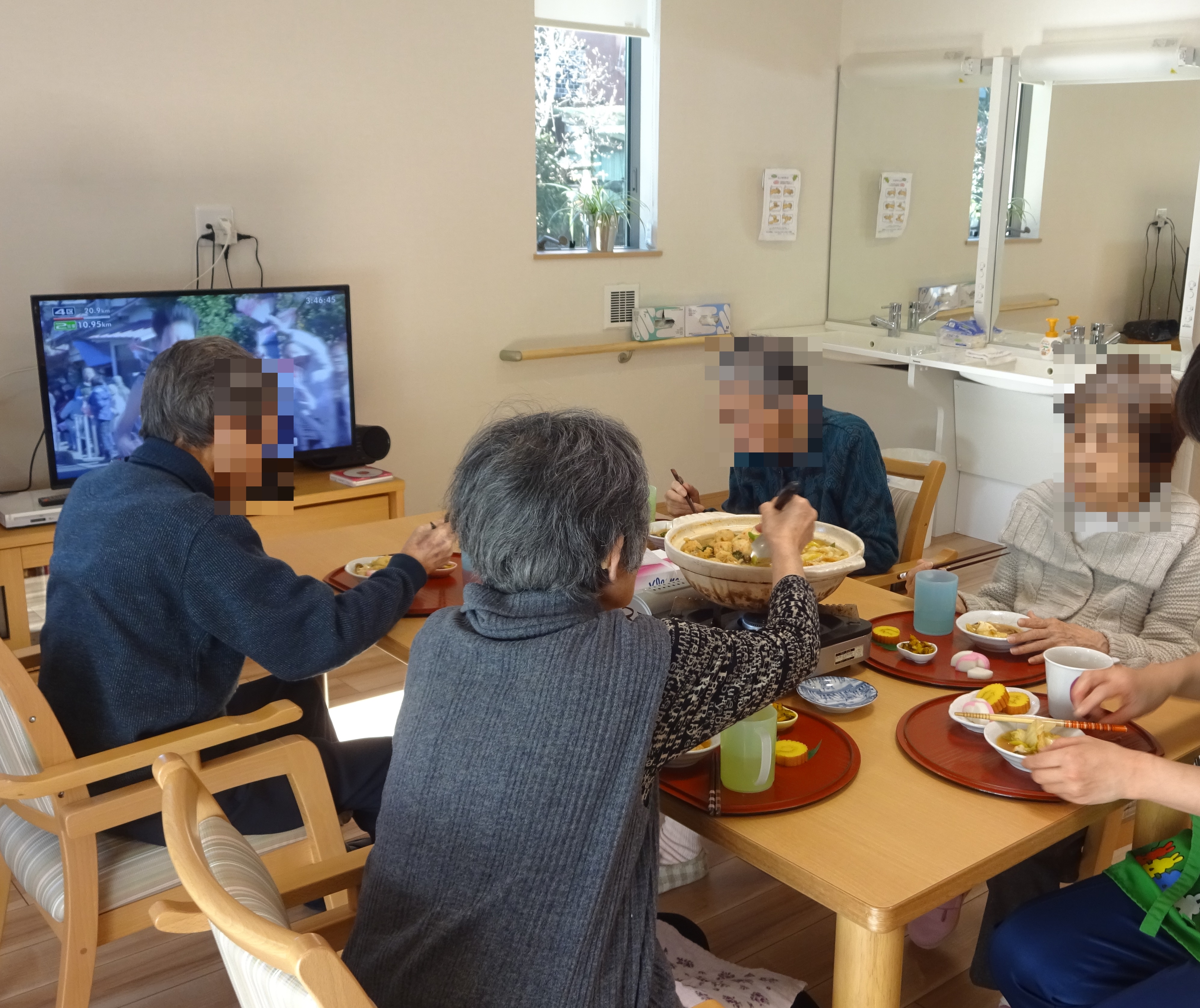 シリーズ グループホームの日常⑤ 投稿日 2018-01-26 ブログカテゴリー ふれあい多居夢 戸田 グループホームふれあい多居夢戸田です。 新築移転後初めての冬を迎えました。 大寒のこの頃、最強寒波の到来で都心でも48年ぶりの低温を観測したとか。 ホーム内は室温管理はしていますが、やはり寒い日は温かいものを食べたくなります。 各ご家庭でも冬の定番の鍋は楽しみの一つですね。 Heartwarming 鍋を囲むと家庭的な雰囲気で心もお腹も温まります。