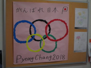 「頑張れ、日本!!」:(ふれあい多居夢 浦和) 投稿日 2018-02-22 ブログカテゴリー ふれあい多居夢 浦和 日本のメダルラッシュに入居者様も喜ばれております。 “カーリング”も面白いねと真剣に見ておられます。 先日、ちぎり絵で五輪のマークを入居者様と一緒に作成しました。 5色の画用紙を一生懸命ちぎっていただき、みなで協力して完成できました。 フロアに掲示すると、手作り感があって良い作品になりました。 「頑張れ日本!」と日本の選手を応援していきたいですね。 管理者