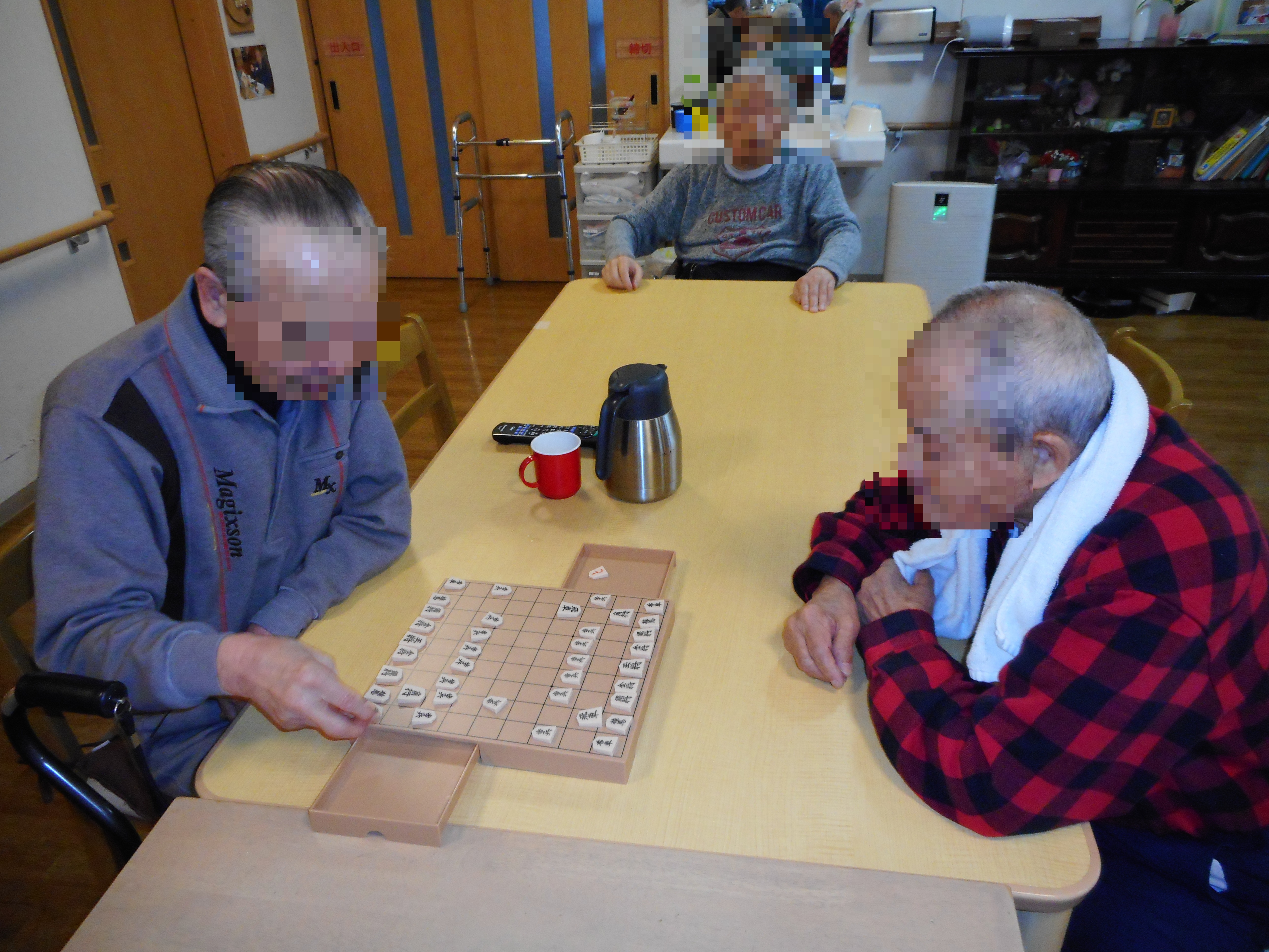 シリーズ グループホームの日常⑧ 投稿日 2018-04-24 ブログカテゴリー ふれあい多居夢 川口峯 今日は川口事業所にお邪魔しましたら、男性入居者様同士で将棋を指していらっしゃいました。 最近、藤井聡太六段の活躍で何かと将棋の話題多いですが、入居者様の世代ではゲームのない時代将棋や囲碁はポピュラーな遊びだったと思います。ちょっとした物忘れはあっても、こうした記憶はしっかり残されており午後のひと時を楽しまれていらっしゃいました。 将棋ボランティア募集承ります。 本社スタッフ