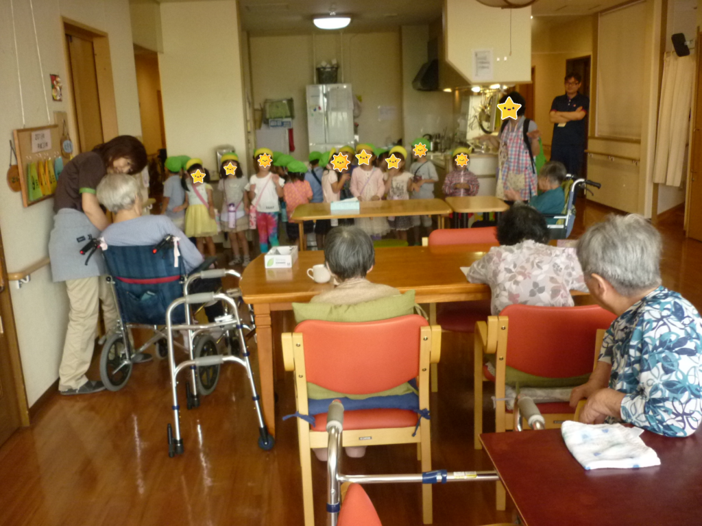 近隣の保育園児さん来訪☆彡:大宮 投稿日 2018-09-18 ブログカテゴリー ふれあい多居夢 大宮 保育園の子供たちが敬老のお祝いに来てくれました! 元気のよい歌と踊りを披露してくださり、 入居者様も一緒に歌われたりと 楽しい交流のひと時を過ごすことができました。 子供たちの笑顔はやっぱり元気がでますね! ふれあい多居夢大宮 管理者 國東
