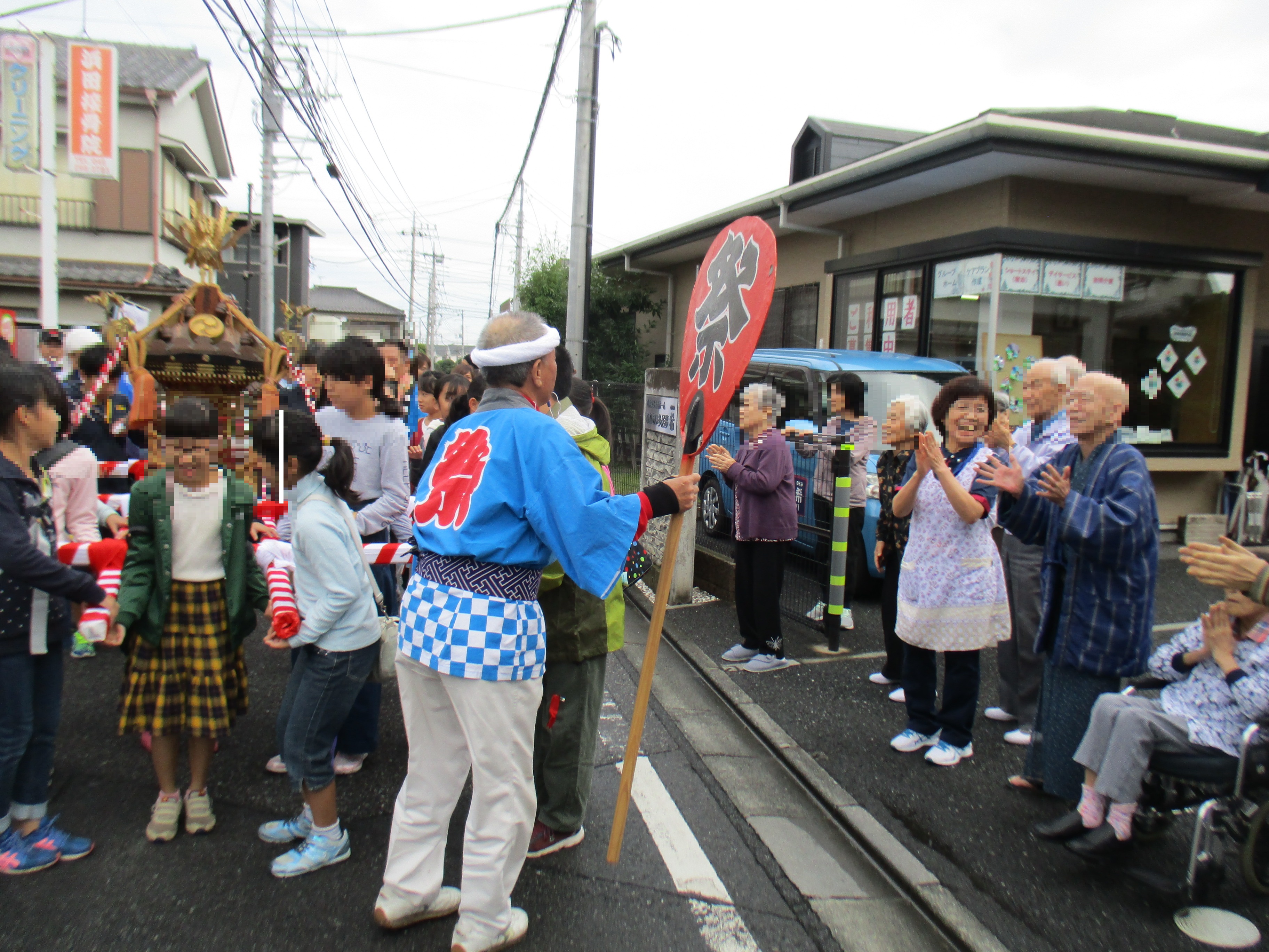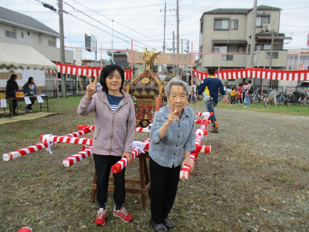 宮元町祭り:希 投稿日 2018-10-22 ブログカテゴリー ふれあい多居夢 希(川越) 14日に宮元町祭りがありました。 こども神輿があり、子供達のワッショイ!という 元気な声が町内に響いていました。 希の前もご利用者様と一緒に「ワッショイ!ワッショイ!」 といいながら通り過ぎていきました。 前日から雨でしたが、雨も上がって一安心。 施設から歩いて数分のところに会場があり、皆で歩いて会場へ~ 子供神輿の前で写真撮ったり、ヨーヨー釣りに参加させてくださったり とても楽しい時間を過ごさせて頂きました。 席を用意して下さって、本当にありがとうございます。 管理者