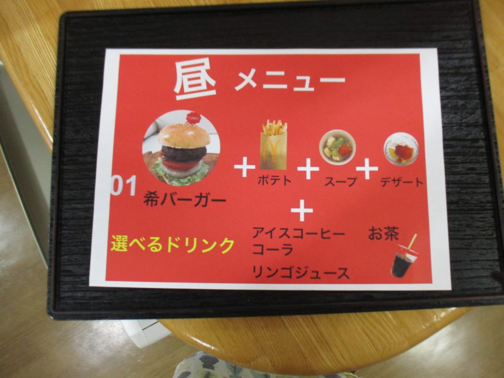 今日のランチメニューは「希バーガーセット」です。