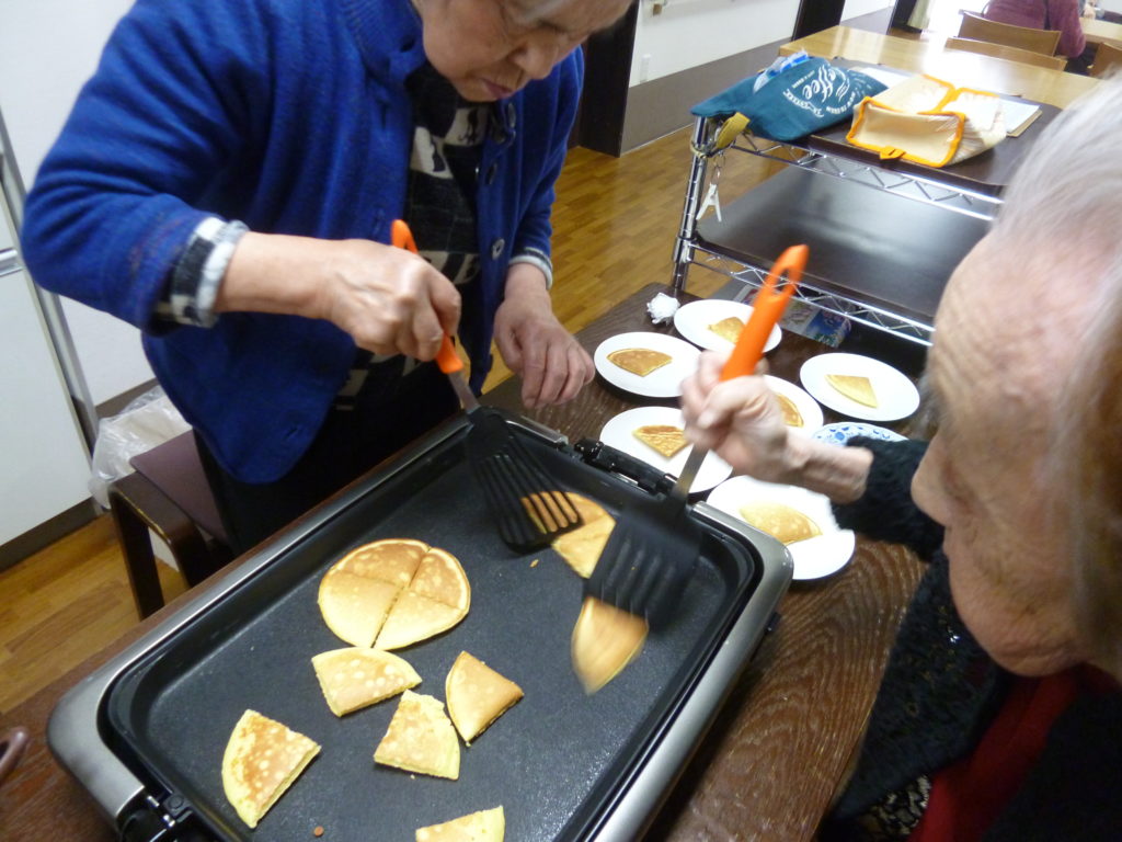 ほっこりタイム:国立 投稿日 2019-03-31 ブログカテゴリー carna(カルナ)国立 カルナ国立です(*’ω’*) このあいだのおやつは、ご利用者さまに自分たちで 好きなようにパンケーキを作ってもらいました💖 キレイにまぁるく焼いて… チョコレートソースをかけて… クリームまで添えて…!! のんびり幸せな時間⏰ 見た目もお味も◎でした(^_-)-☆