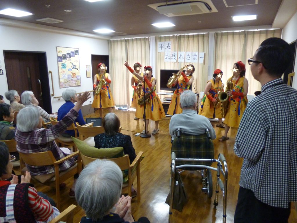 平成お疲れ様 – JAZZライブ:国立 投稿日 2019-03-26 ブログカテゴリー carna(カルナ)国立 carna国立です☆ 先日‘Lady Honkerz‘という 女性だけの管楽器JAZZグループの方々が ライブをしてくださいました! 元号が変わる前、ということでその名も 「平成お疲れ様 – JAZZライブ」 いつもと違う雰囲気と楽しい音楽に ご利用者様もスタッフも大盛り上がり~(‘ω’)ノ とっても楽しませていただきました♪ Lady Honkerzのみなさま、本当にありがとうございました!