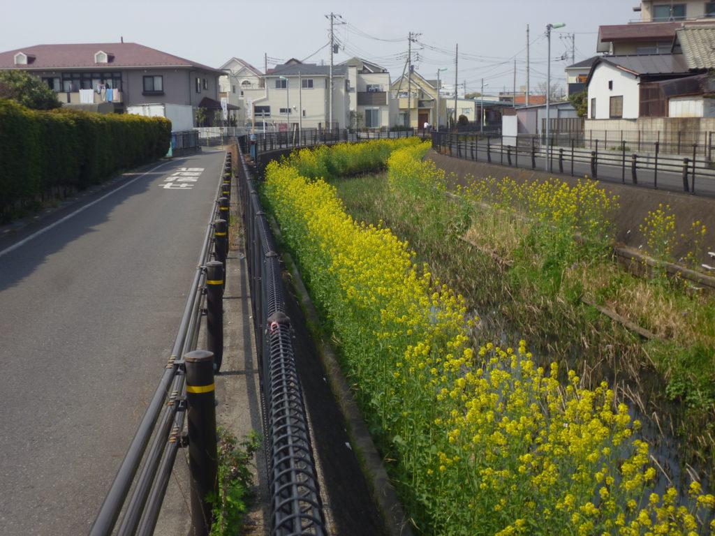 今は川沿いの菜の花が満開です。