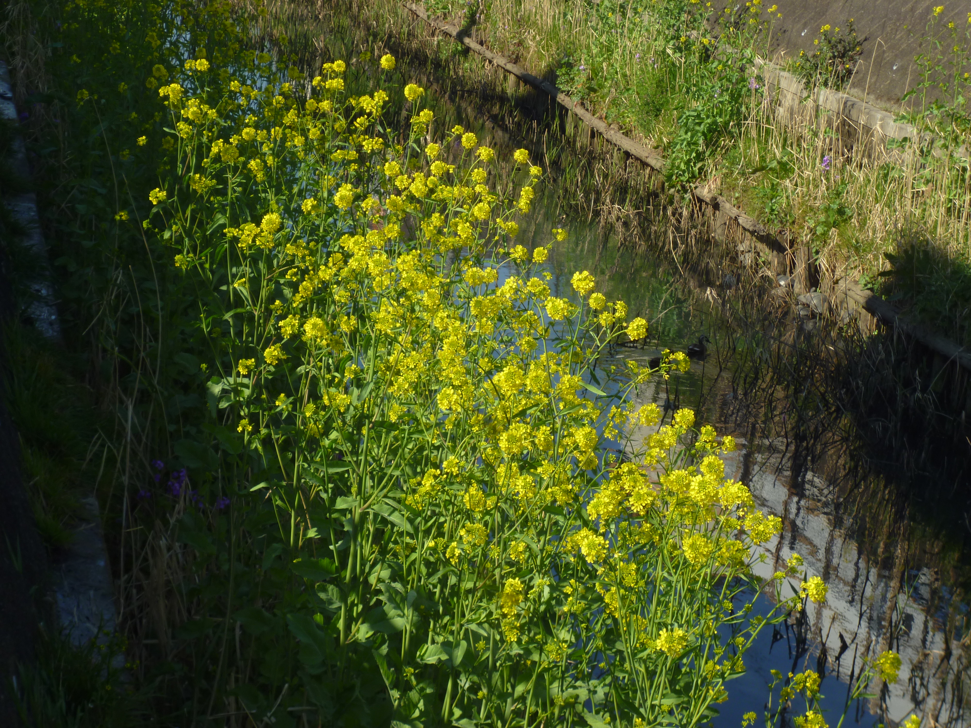 今は川沿いの菜の花が満開です。