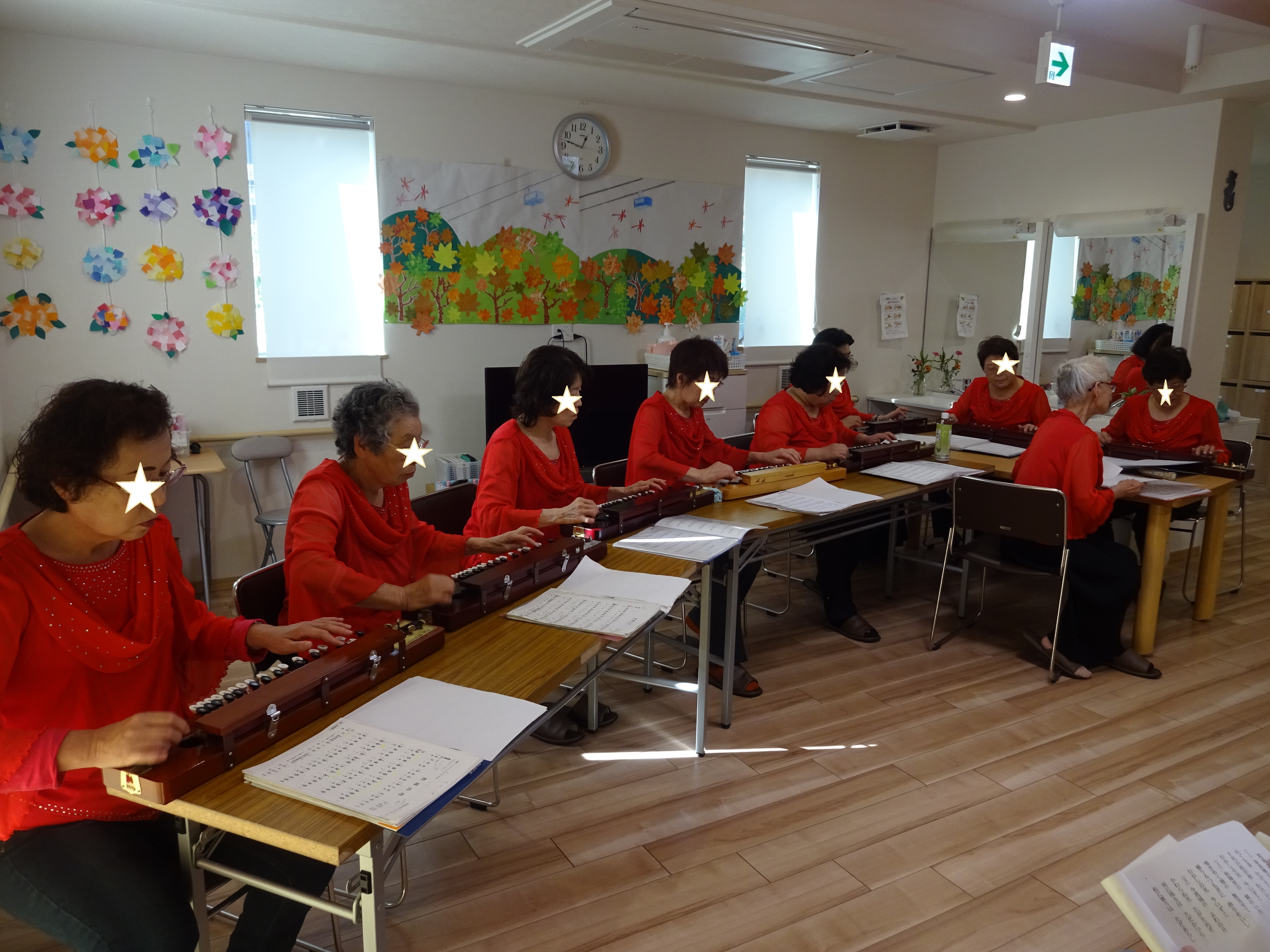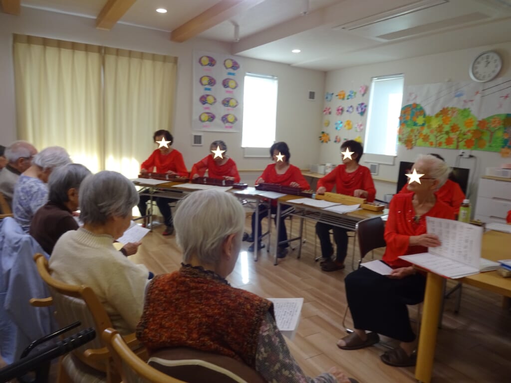 大正琴:戸田 投稿日 2019-11-29 ブログカテゴリー ふれあい多居夢 戸田 ふれあい多居夢 戸田です(^^♪ 先日、大正琴のボランティア団体「八千代会」による演奏会が開催されました! 八千代会は入居者様のお名前から命名され、 教員時代の教え子の皆様が中心となって活動されている団体です。 入居者様は八千代会の皆様の演奏に合わせてたくさんの曲を口ずさんでいらっしゃいました。 翌日には入居者様の大正琴をお借りして、皆さんで演奏にも挑戦されていました。 普段の生活ではなかなか耳にしない穏やかな音色に入居者様も癒されていたようですっ(‘◇’)ゞ スタッフ