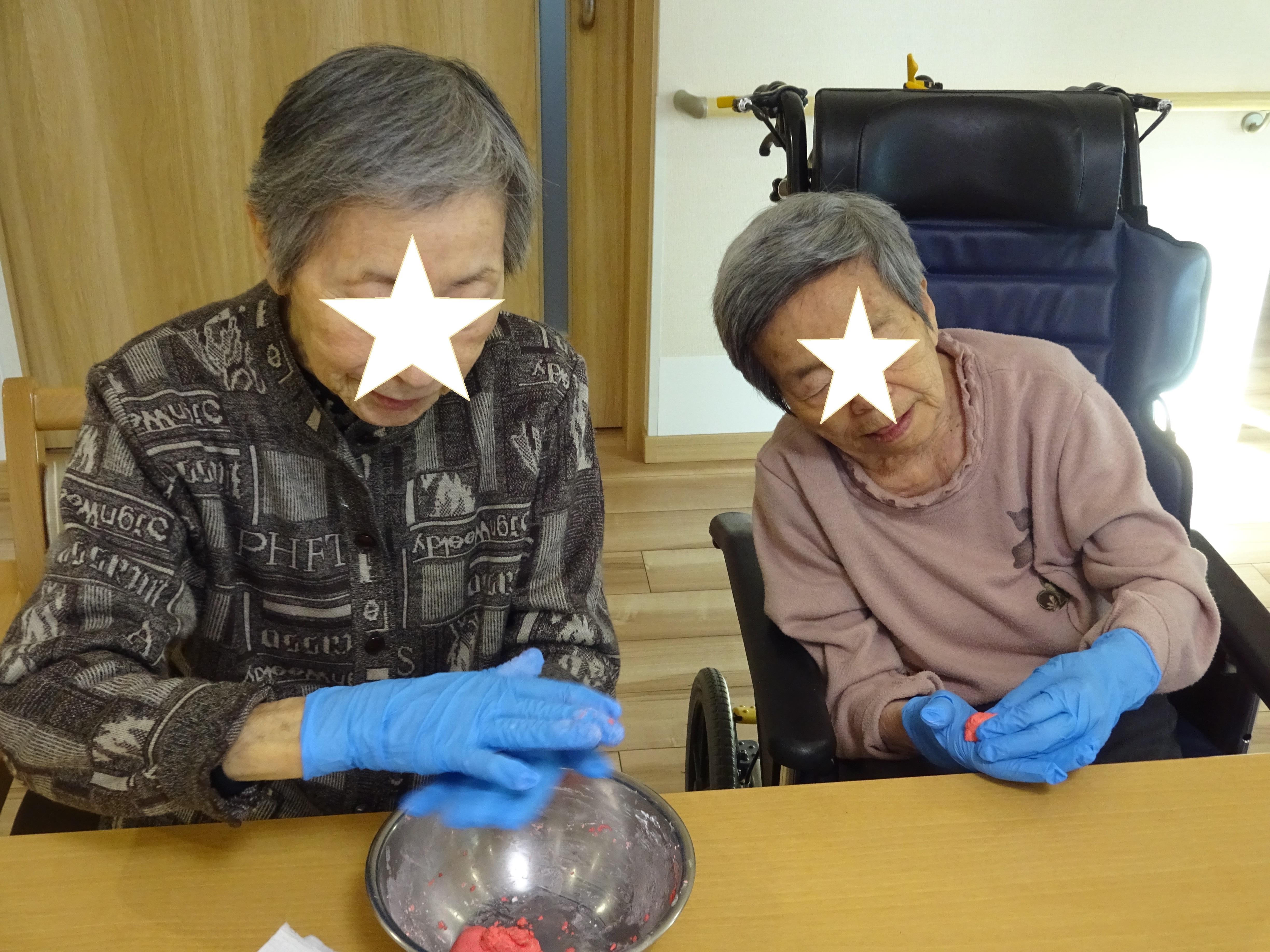 カラフル🐼パンダ:戸田 投稿日 2019-12-10 ブログカテゴリー ふれあい多居夢 戸田 ふれあい多居夢 戸田です😸 先日、ホーム内で白玉つくりをしました。 白玉粉をコネコネコネ。 今日はちょっと色を付け…なんともカラフルなアジパンダが出来上がりました。 (ちなみにアジパンダとは味の素株式会社のキャラクターです) あんこやカットフルーツと一緒に盛り付けました(⋈◍>◡<◍)。✧♡ スーパーやコンビニエンスストアでも白玉団子は売っていますが、 入居者の皆様はホーム内で作った白玉の方が断然美味しい!と 喜んで召しあがっています。 スタッフ