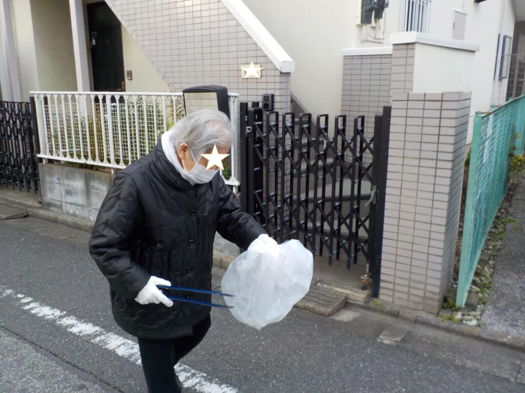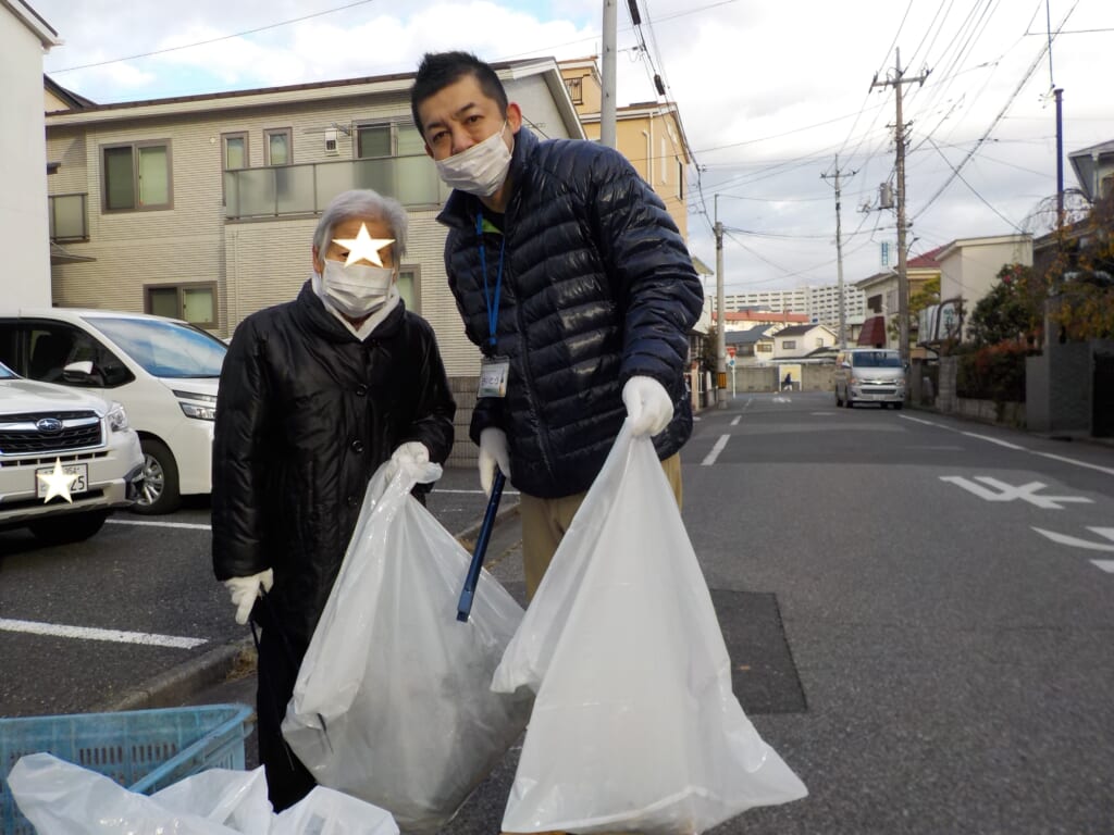 寒い朝でしたが、自治会の皆様と一緒に袋を持ち