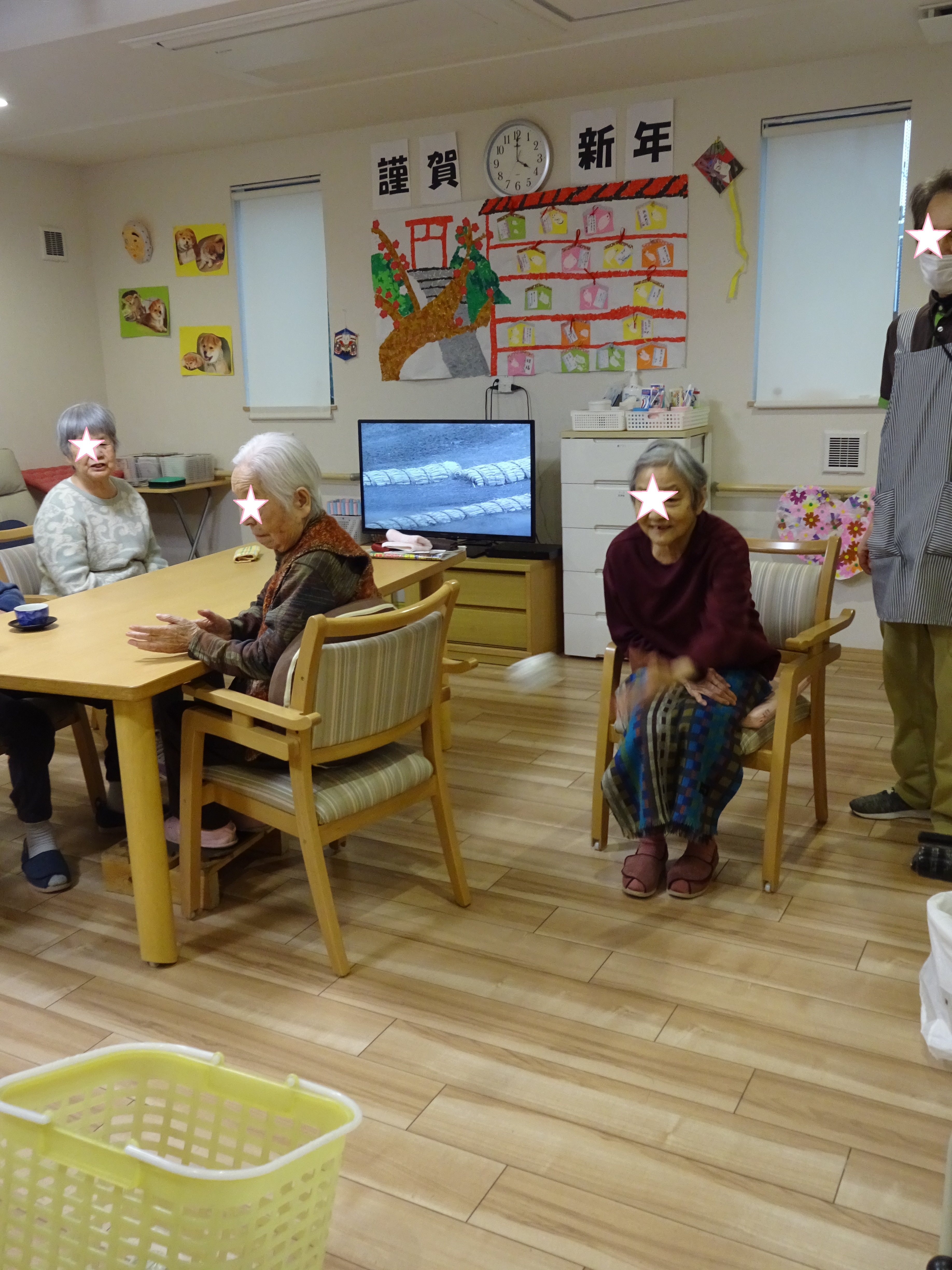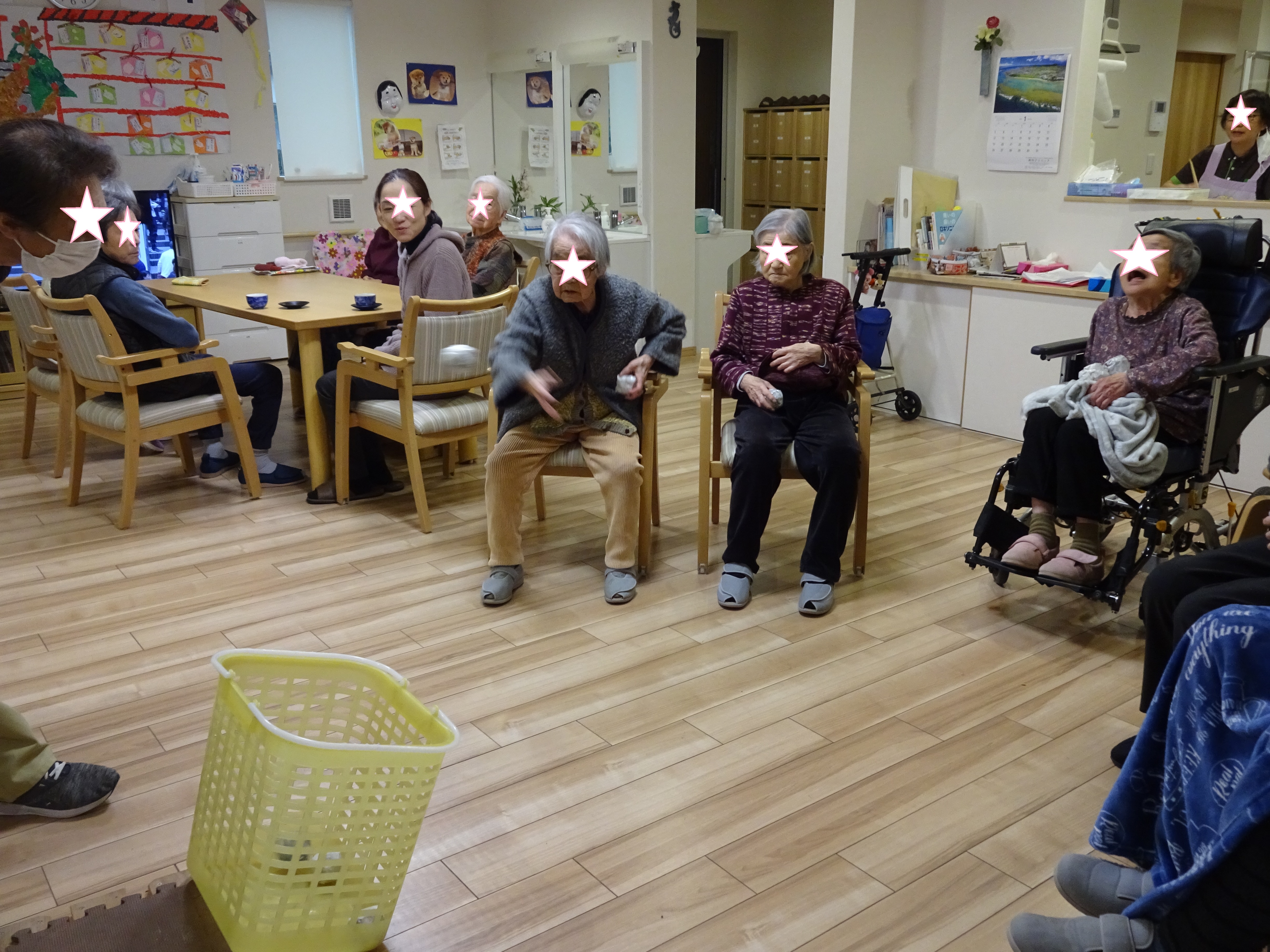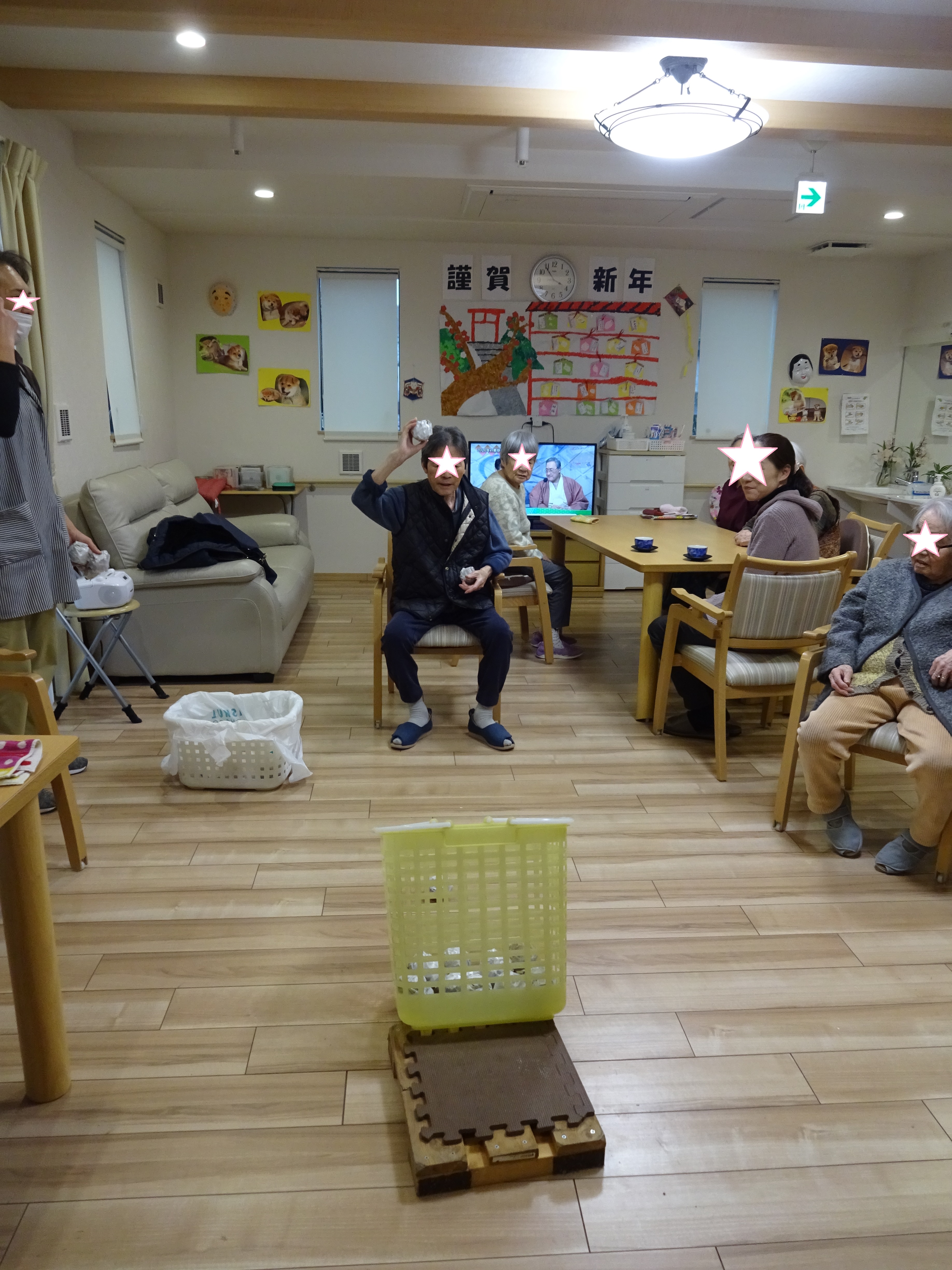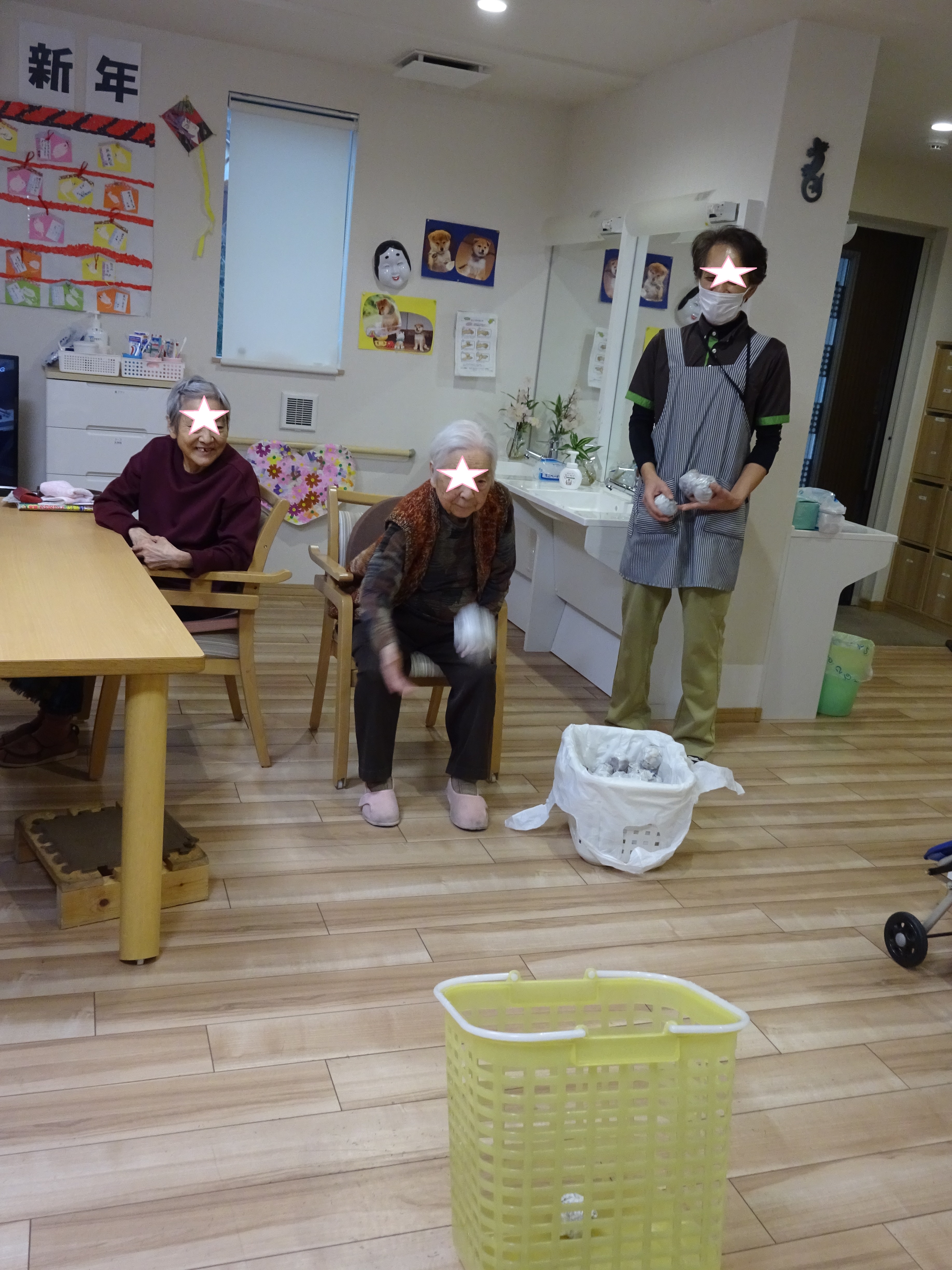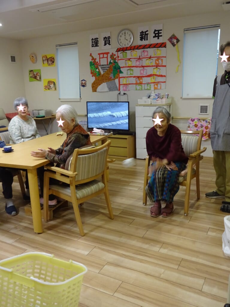 玉入れ~🥎:戸田 投稿日 2020-02-17 ブログカテゴリー ふれあい多居夢 戸田 ふれあい多居夢 戸田です(/・ω・)/ 施設では入居者様が楽しんでいただけるような 様々なゲームをして過ごします。 今回は玉入れをしてみました。 紙を丸めたボールを作り、洗濯かごに狙いを定めて...。 遊びにいらっしゃっていた娘さんが見守る中、 ちょっとカッコつけてオーバースローで投球です! なかなか白熱した玉入れゲームになりました。 スタッフ