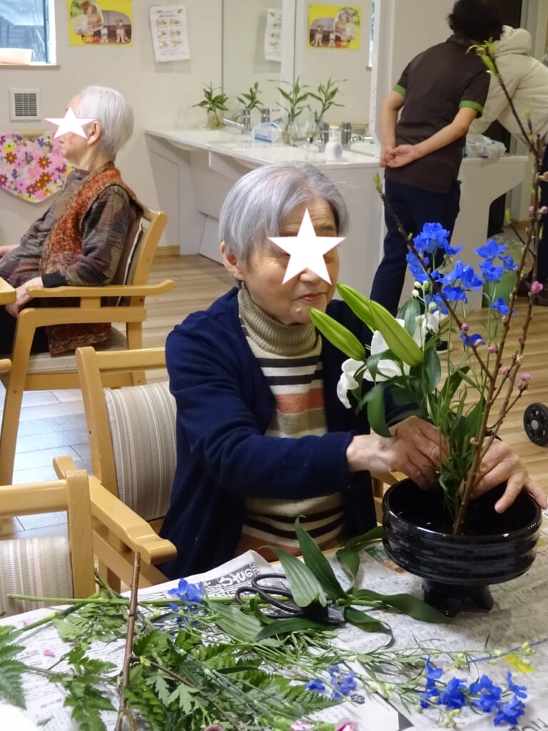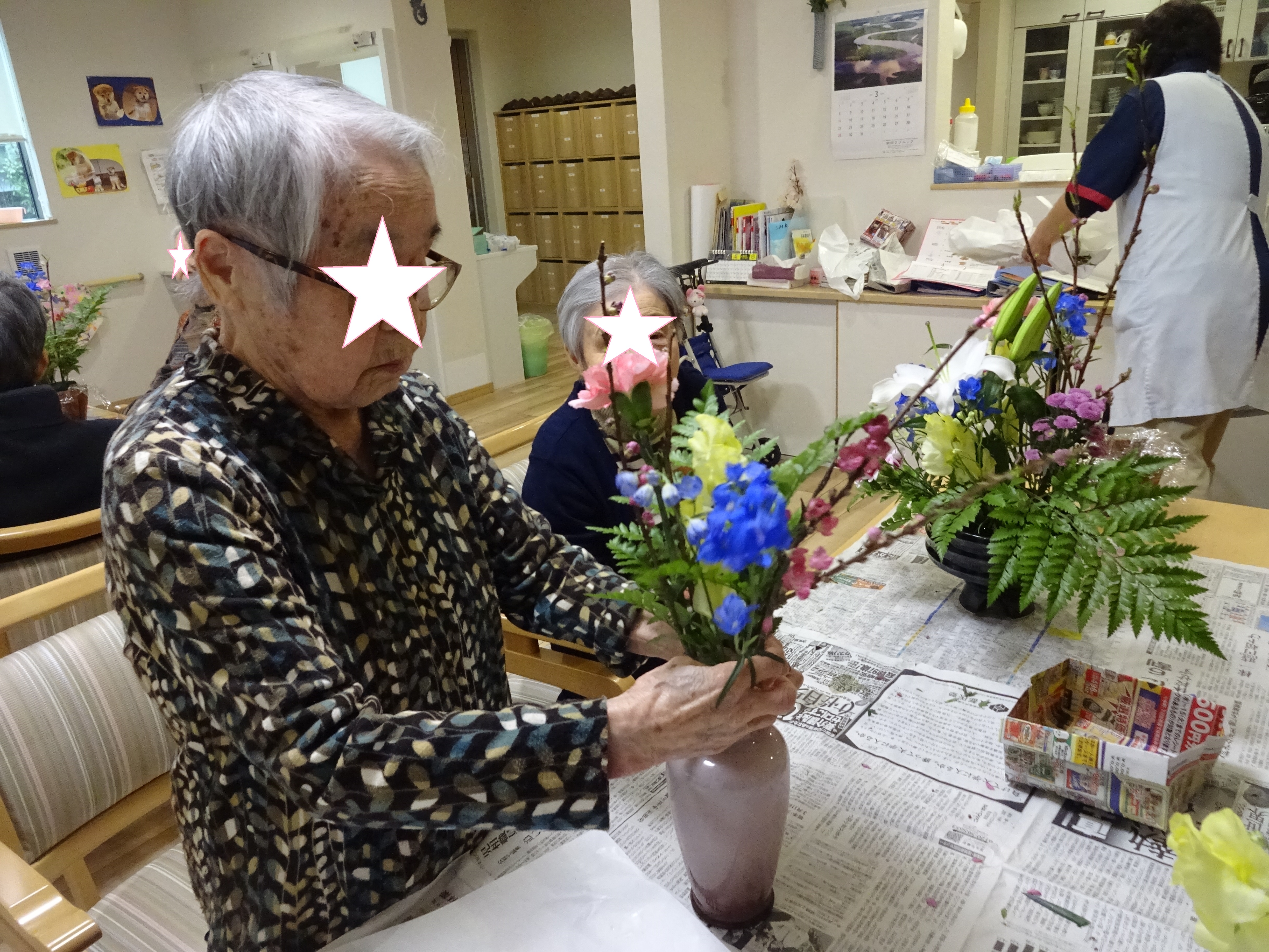 施設内がお花のいい香りに包まれて、華やかになりました。