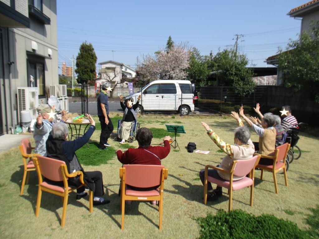 お庭で合唱:川越&希 投稿日 2020-04-15 ブログカテゴリー ふれあい多居夢 川越 ブログカテゴリー ふれあい多居夢 希(川越) ふれあい多居夢川越&希です。 天気が良く気温も上がった午後、グループホームの庭にて 体操や合唱レクを行いました。 適度な間隔を保ちつつ、大いに盛り上がりました。 上着もいらないほど外は暖かい日でした♪ 管理者&スタッフ