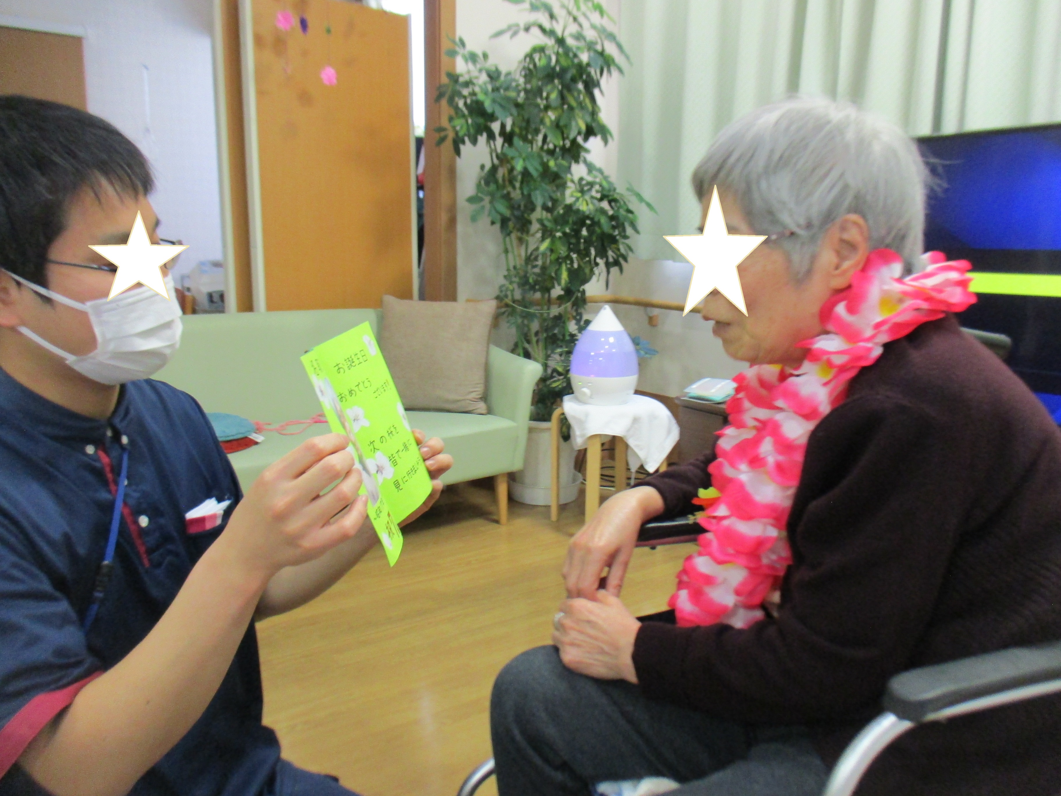 誕生祭!:希 投稿日 2020-04-17 ブログカテゴリー ふれあい多居夢 希(川越) ふれあい多居夢 希です。 4月の誕生日会です。 前半はゲームで盛り上がり、後半はご本人希望により リサイタルショーを開催しました。 「幸せです」と喜んでくださいました。 スタッフ