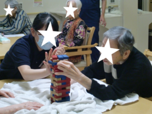 ジェンガのゲームを楽しんでいました。