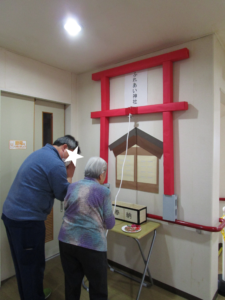 今年はホームに「ふれあい神社」を設置しまして