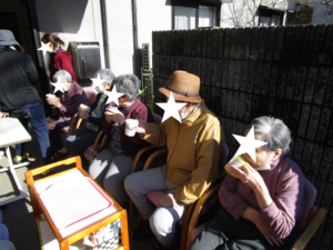 消防訓練をしました!!:浦和 投稿日 2021-02-23 ブログカテゴリー ふれあい多居夢 浦和 ふれあい多居夢浦和です🌸 2階のお風呂場より出火したと想定し、 消防訓練をしました!٩( ・ω・)و! 皆様落ち着いて玄関先まで避難ができました。 さすがでした・・・!✨ 避難についてのご入居者様への説明も終え、 皆様ほっとしたご様子。 気が付けば外には1階2階のご入居者様大集合♪ お天気も良くお茶会日和だったのもあり、 訓練の後はお外でティータイムを楽しみました♡