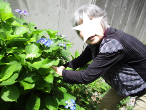 ホームのあじさいを楽しそうに摘まれたり、