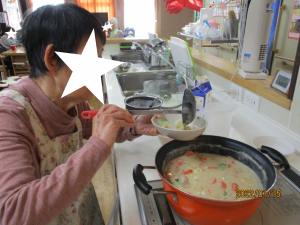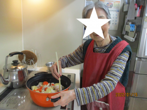 具材を煮込みながら微笑んでくださる表情や