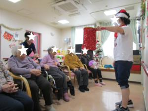 浦和のHAPPY CHRISTMAS♪🌟 投稿日 2023-04-21 ブログカテゴリー ふれあい多居夢 浦和 昨年12月、毎年恒例のクリスマス会を浦和でも 楽しみましたので、ここでご報告いたします♪ 今回は新型コロナウイルス感染防止のため、 各階で分かれて楽しみました(๓´˘`๓) 管理者のマジックショーや、 ご入居者様の合唱! みなさん楽しいひと時を過ごされました🌟