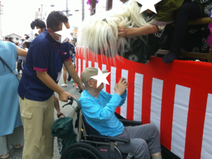 志木宗岡より🏮✨八坂神社 御祭礼 投稿日 2023-07-19 ブログカテゴリー ふれあい多居夢志木宗岡 みなさんこんにちは!(*´▽`*) ふれあい多居夢志木宗岡です。 今回は、近くにお神輿が通るということで みんなで見に行きました💪 地域の方と交流し、皆さんとても楽しそうです! 獅子舞もいたので、頭をかじってもらいました。 近くで見る神輿は大迫力でした・・・! 会場はとても活気がありますね♪ 最後は、職員もみんなで集合写真を撮りました! 今後も地域のみなさんと 交流を深めていきたいと感じた外出でした☺
