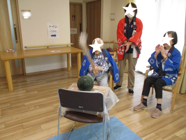 🍉納涼祭でスイカ割り!!✨多居夢戸田 投稿日 2023-08-15 ブログカテゴリー ふれあい多居夢 戸田 ふれあい多居夢戸田です♪ 8月5日に、納涼祭を行いました。 スイカ割りでは皆さん白熱した様子が見られ、 みんなで力を合わせ(?)て、 見事にスイカを割ることができました。 もちろんスイカは美味しくいただいております🍉 猛暑が続く毎日ですが、ご入居者のみなさまは お元気に過ごしていらっしゃいます♪(´`*)