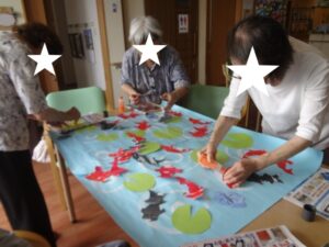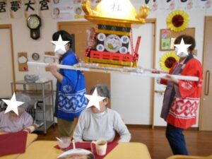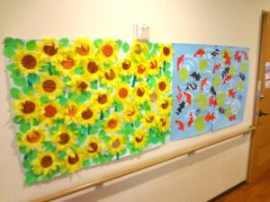 ふれあい多居夢大宮より🎈近況ご報告🌟 投稿日 2023-09-25 ブログカテゴリー ふれあい多居夢 大宮 こんにちは、ふれあい多居夢大宮です! ホームでの最近の出来事をご紹介いたします✨ ふれあい多居夢大宮では・・・ 納涼祭のためにお神輿を作成しました💪 まさに大作です!٩( ‘ω’ )و ✨ 風船をうちわであおぐゲーム、 虫取りのゲームをしたり・・・。 壁絵制作のレクも行いました🐠🐟 ホームの中では、ご利用者様と手作りしたものを 定期的に壁に貼ったりして飾っています。 どれも素敵な作品です♪ 定期の避難訓練も行い、無事に完了しています。 今後もホームのようすをご報告してまいります♪