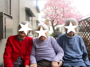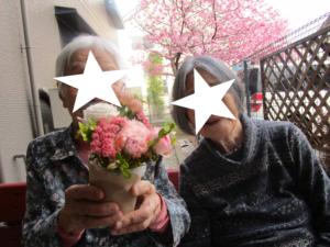桜のおかげで心なしか、ご入居者様とスタッフが