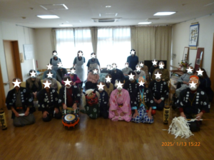 「無病息災を願って獅子の舞」🔥川口峯 投稿日 2025-02-24 ブログカテゴリー ふれあい多居夢 川口峯 本年も、地域の方々のお囃子と獅子が 福を運んで下さいました!✨ まずはお祓いから・・・。 地域伝統のお囃子です! そして・・・‼ 獅子舞、ひょっとこ、おかめの登場‼ ご入居者皆様の今年一年の健康を祈って💛 お一人おひとり・・獅子に頭をかじって頂きました。 最後は、みんなで記念撮影。 「今年も福正月が来た‼」と実感しました。 関わるすべての方々に福が舞い込みますように 心から願っております。