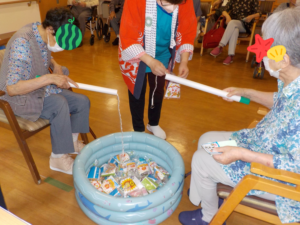 暑さに負けず💦元気いっぱい夏祭り✨ 投稿日 2025-07-22 ブログカテゴリー ふれあい多居夢 蕨 ふれあい多居夢蕨では暑さに負けず、 お祭りを開催いたしました! 的あて わなげ お菓子釣り・・・。 素敵な笑顔、元気なお声で参加くださいました! 3時にはデザートバイキングでお好みスイーツ、 スイカを召し上がり、大盛況でした♡🍰🍉 現在ふれあい多居夢蕨の小規模多機能ホームでは 利用定員に余裕がございます(*^-^*) 通いを中心に訪問・宿泊のサービスを 柔軟に組み合わせて対応させていただきます! お気軽にご連絡、ご見学お待ちしております✨ TEL:048-434-5335