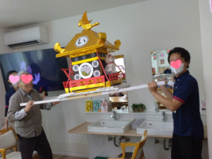有志の方とスタッフで一緒にお神輿を担いだりと