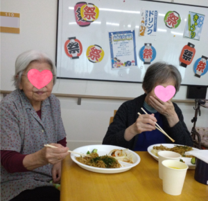 スタッフ手作りの焼きそばやチョコバナナ、