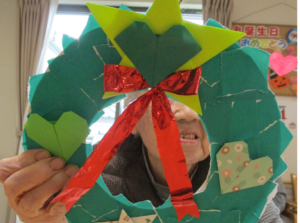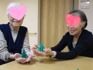 色紙で作るリースやモミの木が完成する度に、