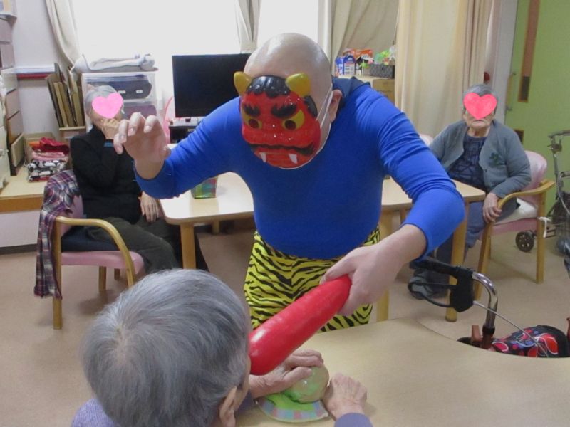 ふれあい多居夢浦和の節分👹👹👹 投稿日 2026-02-16 ブログカテゴリー ふれあい多居夢 浦和 節分で、厄払いをしました!( ᐢ˙꒳˙ᐢ ) ご入居者様の皆様が、鬼に豆をまきます。 鬼はそと! 福はうち! 笑い声が響きます✨ ご入居者様も、鬼に扮してくださいました!とても優しそうな鬼です♪ 鬼もうち~なんて言いたくなりました。 ご入居者様、スタッフみんなで楽しい節分を過ごすことができました。
