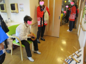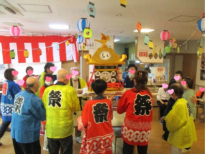 立って踊れる方は、職員と一緒にお神輿の周りで