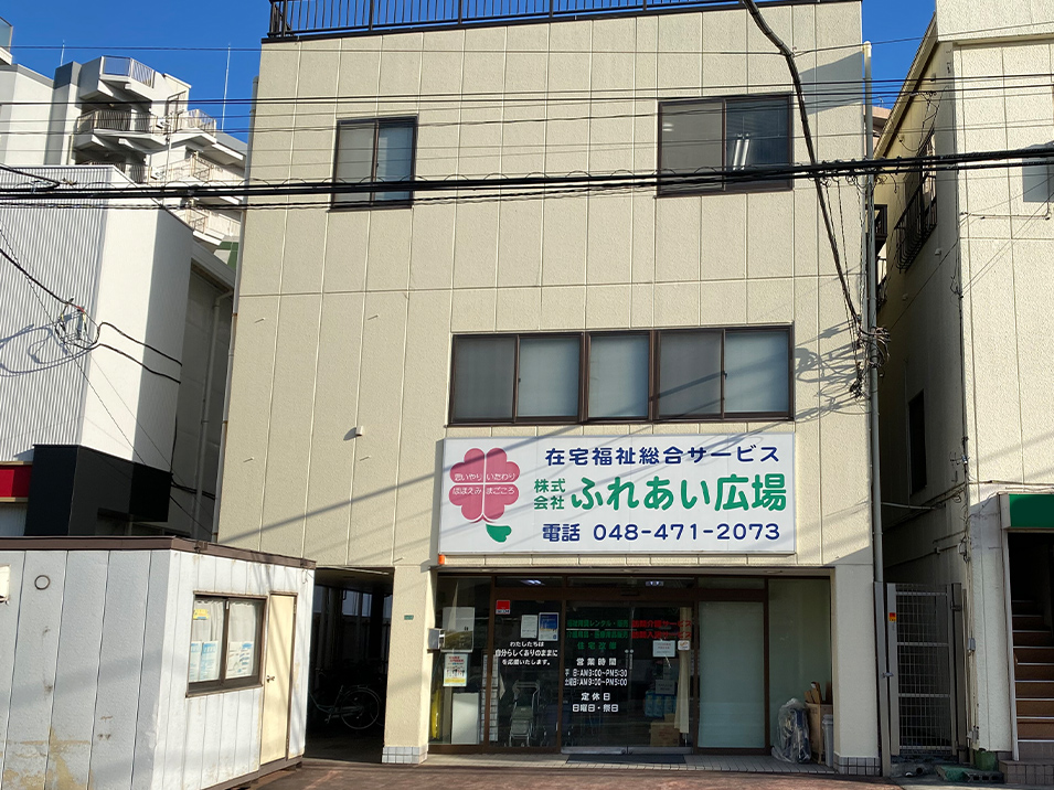 埼玉県新座市にある「ふれあい広場 新座店」です。当事業所では、住み慣れたご自宅で安心して暮らし続けられるよう、福祉用具のレンタル・販売、そして介護保険を活用した住宅改修を行っています。